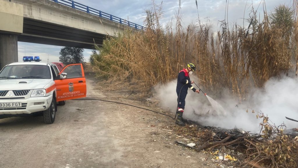 Protección Civil de Numancia de la Sagra intervino este lunes 24 de noviembre en la extinción de un incendio declarado en un camino próximo al municipio, tras recibir el aviso del alcalde, Juan Carlos Sánchez Trujillo.
